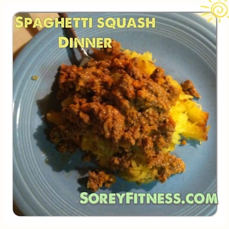 After the spaghetti squash was cut, the rest of the recipe was pretty easy to fix. It was really good too–Jake basically licked his plate when he came over.
