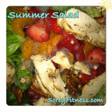 For lunch I had part of a Panera Bread Strawberry Poppyseed Salad. I did use the dressing which is a no-no on the Whole 30, but I used it sparingly. (This picture is right as I poured it on).
