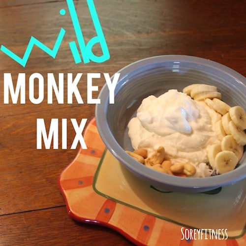 I had been wanting to try Monkey Mix (same as above without yogurt), but it was so dry. Adding the yogurt make it more of a meal over a snack.